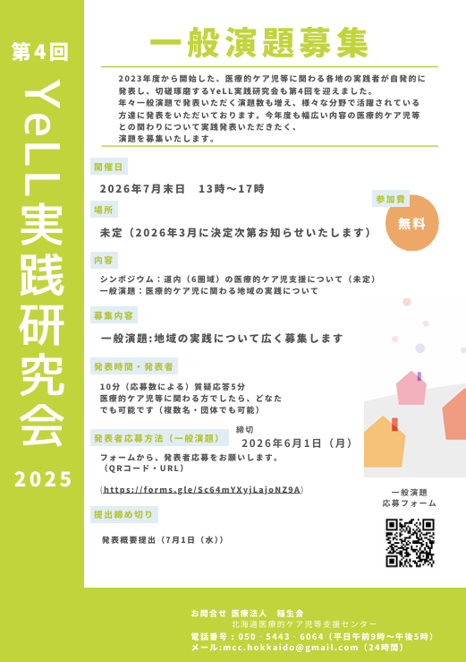 2015年度に開始となった北海道小児在宅医療連携拠点事業(通称YeLL)では。北海道の小児在宅医療および医療的ケア児支援の優れた実践を広げるため、2017年度より「YeLL実践検討会」を開催してきました。